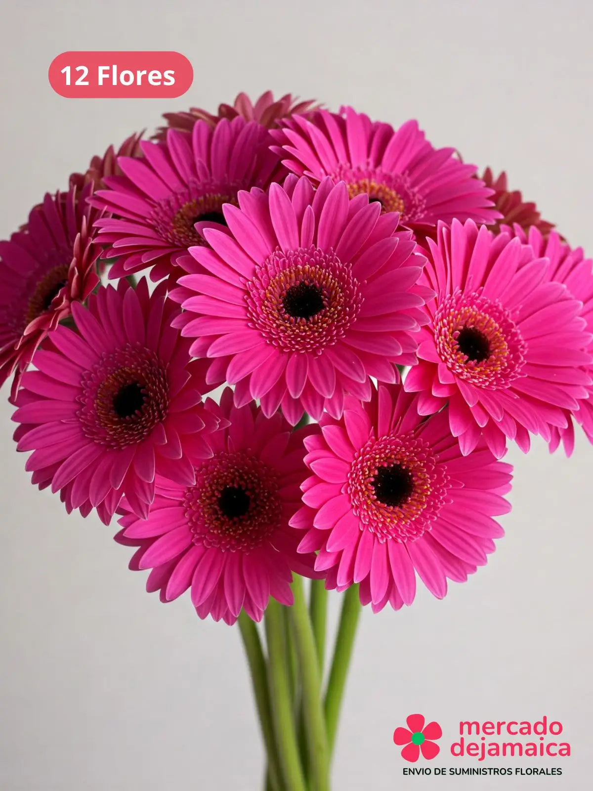 Prioritizamos la selección de gerberas en presentación de 12 tallos siempre que sea posible. En caso de no haber suficientes flores en dicha presentación, optamos por gerberas en presentación de 10 tallos.