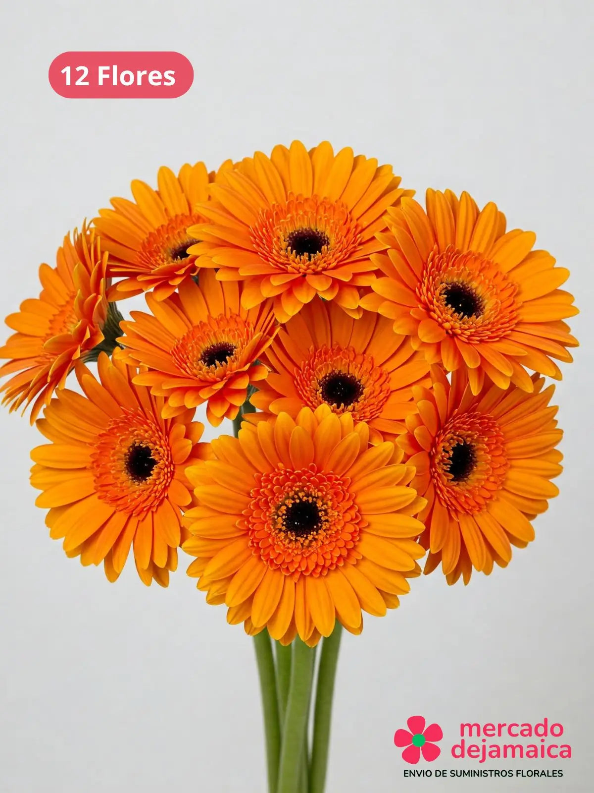 Prioritizamos la selección de gerberas en presentación de 12 tallos siempre que sea posible. En caso de no haber suficientes flores en dicha presentación, optamos por gerberas en presentación de 10 tallos.