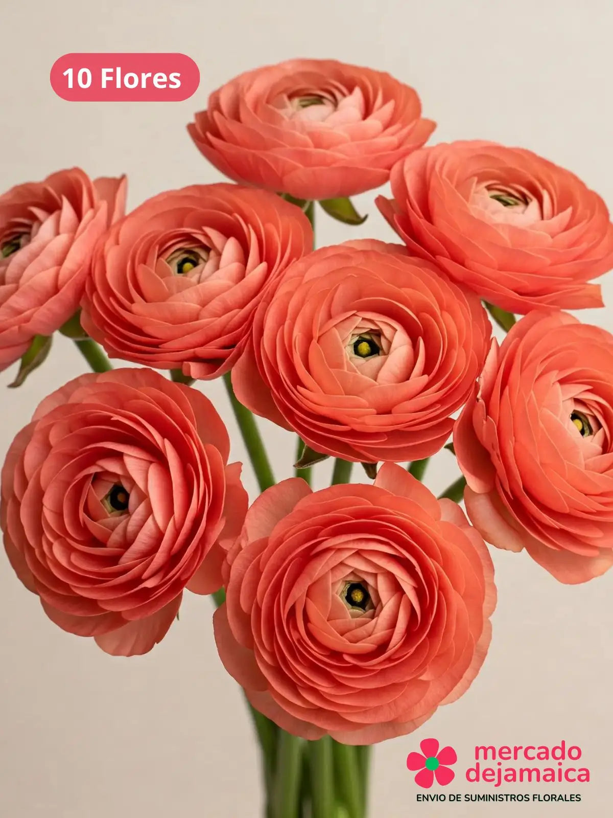 10 Flores ranunculus durazno, flores nacionales, calidad estándar