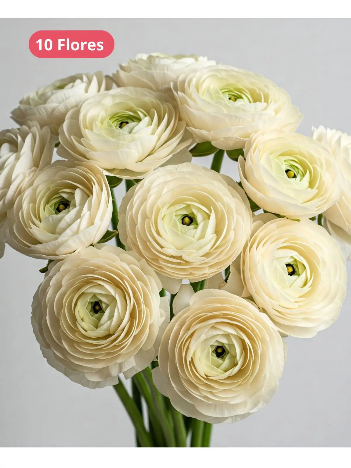 10 Flores ranunculus crema, flor nacional, calidad estándar