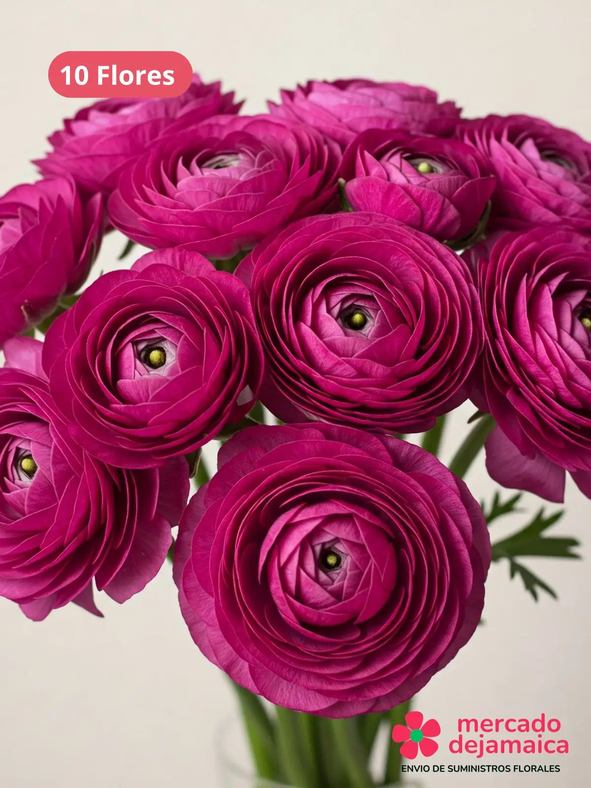10 Flores ranunculus fucsia, flores nacionales, calidad estándar