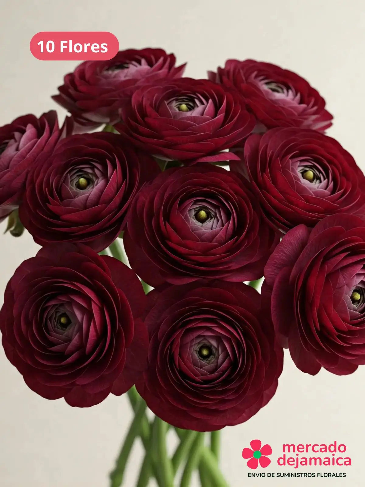 10 Flores ranunculus vino, flores nacionales, calidad estándar.